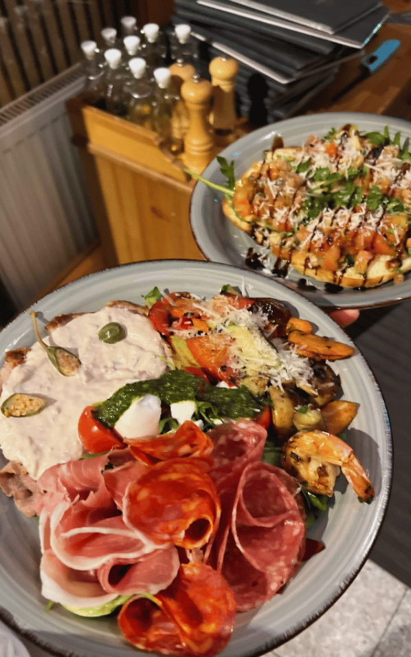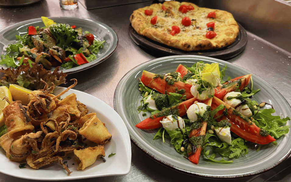 Unsere helle, großzügige Terrasse (im Sommer der absolute Star) und die gemütlichen, warm beleuchteten Innenräume bieten Platz für 10 bis 80 Personen – je nachdem, ob Sie es intim oder ausgelassen mögen. Mit knuspriger Steinofen-Pizza, frischer Pasta, Antipasti-Platten, leckeren Hauptgerichten und hausgemachten Desserts zaubern wir Menüs, die genau zu Ihrer Feier passen – alles frisch, ehrlich und mit viel cuore zubereitet.